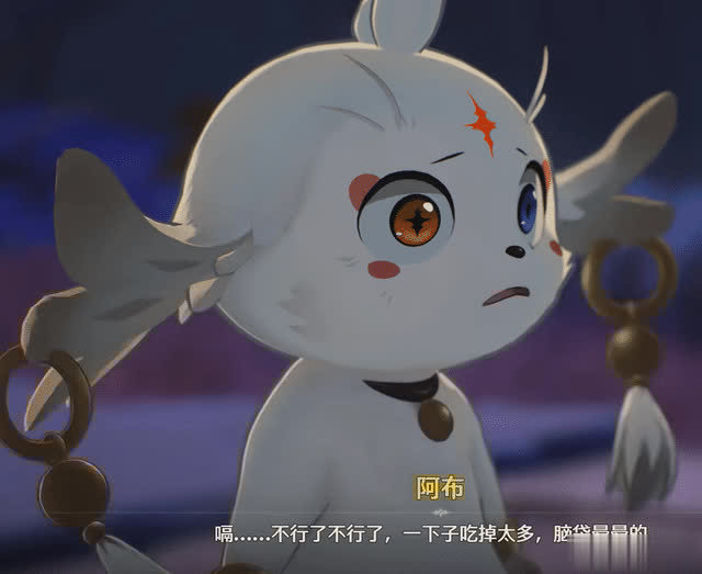 往世花平野第一次遇见伪王时出现了汹涌的黑潮,哈基漂把阿布扔出来吃饭吸收黑潮,给阿布吃撑了,还揉揉自己的滚圆的肚子,还是第一次看到阿布撑成这样,甚至打起了饱嗝,小圆脸因为打嗝瞳孔一缩,原来声骸还会打嗝的吗?然后捂住自己的脸露出头痛的表情,说着“嗝,吃太多了我先去缓缓”就缩进了阿漂的声痕里,老布回去遛弯消食的属于是。